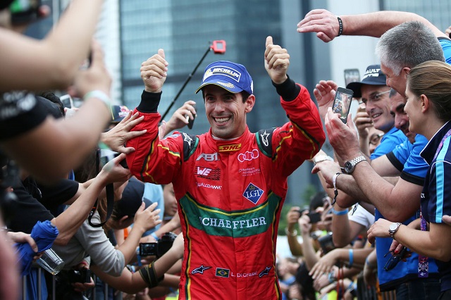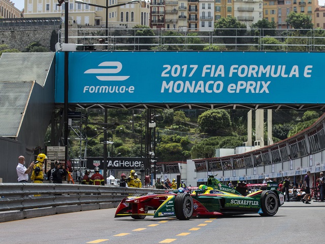 Audi factory driver Lucas di Grassi has clinched another podium result in the Formula E electric racing series on the shortened Formula 1 circuit in Monaco, his adopted country, and in round five of the season kept the crowd in suspense up until the end.