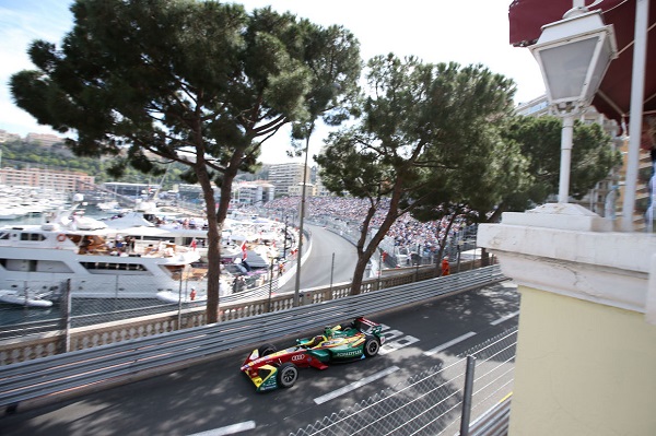 Audi factory driver Lucas di Grassi has clinched another podium result in the Formula E electric racing series on the shortened Formula 1 circuit in Monaco, his adopted country, and in round five of the season kept the crowd in suspense up until the end.
